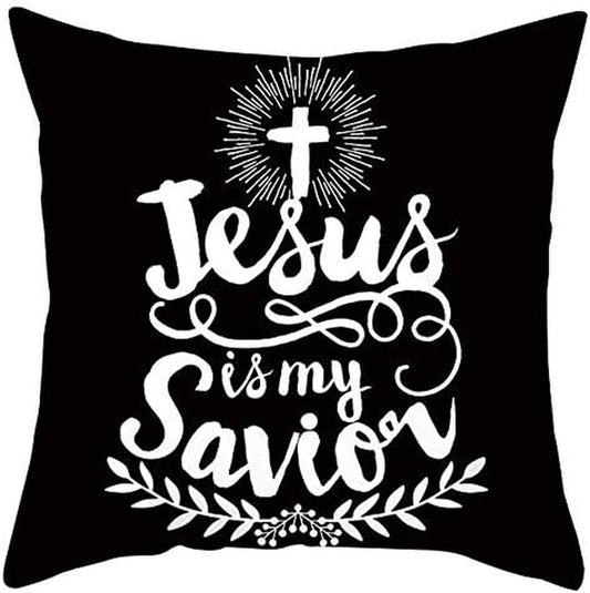 4 Pieces Christian Pillow Cover Bible Quote Jesus Throw Pillow Case Sofa Bed Couch Throw Cushion Cover Decoration (18" X 18")