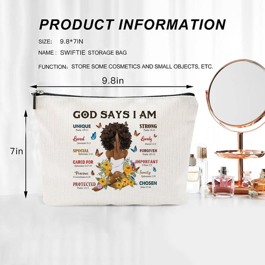 Christian Gifts for Women, African American Makeup Bag for Purse, Inspirational Gifts, Small Travel Pouches Cosmetic Cases