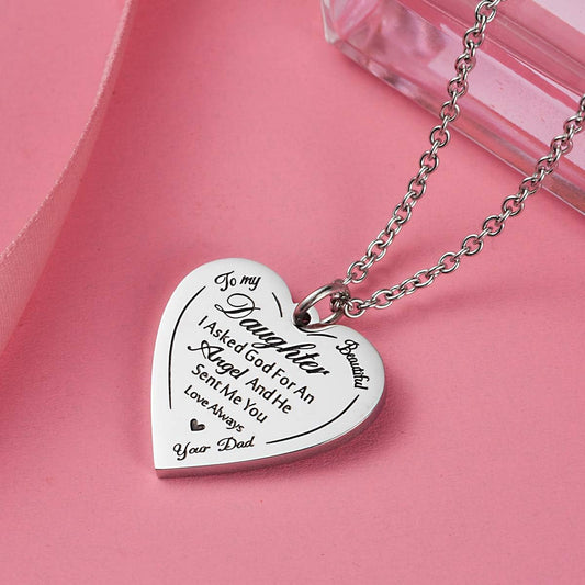 Haoflower Engraved Heart Pendant Necklace for Daughters - "You Are Braver than You Believe" Stainless Steel Motivational Jewelry Gift from Parents